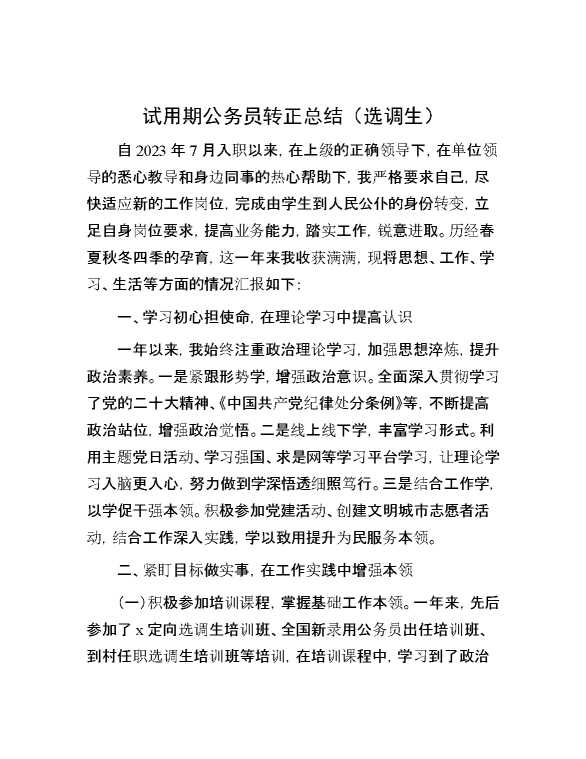 试用期公务员转正总结(选调生) 2024-09-25 Word模板 108 购买前,请一定要先点击这里看看,欢迎持续关注,精彩模板每天推送 预览结束,本文件为word文档,一共5页,共2174字,请购买后,下载后查看 购买前,请一定要先点击这里看看,欢迎持续关注,精彩模板每天推送 资源下载下载价格29 RMBVIP免费升级VIP点击检测网盘有效后购买有任何充值和下载问题请加微信:xuexixuexi66 0 总结汇报