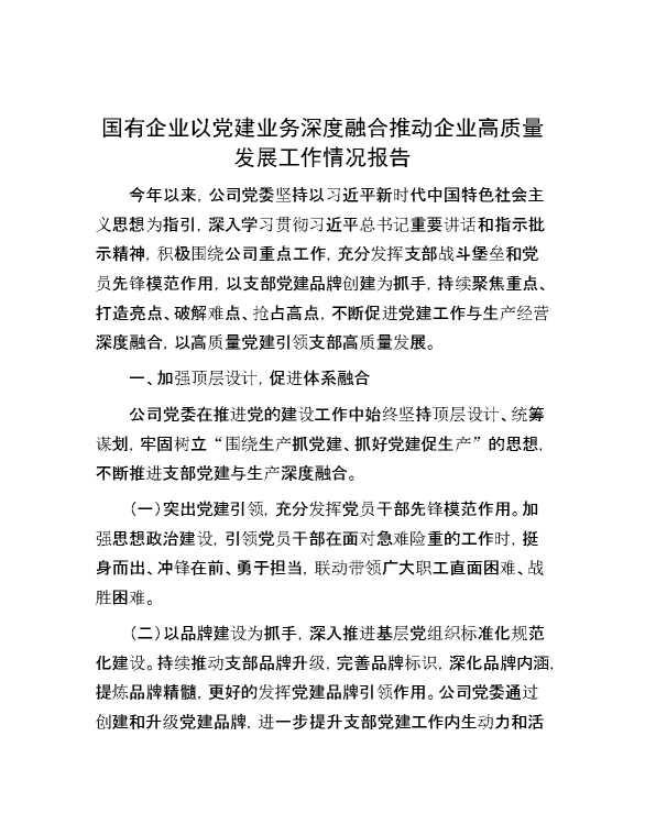 国有企业以党建业务深度融合推动企业高质量发展工作情况报告 2024-09-25 Word模板 112 购买前,请一定要先点击这里看看,欢迎持续关注,精彩模板每天推送 预览结束,本文件为word文档,一共10页,共4558字,请购买后,下载后查看 购买前,请一定要先点击这里看看,欢迎持续关注,精彩模板每天推送 资源下载下载价格29 RMBVIP免费升级VIP点击检测网盘有效后购买有任何充值和下载问题请加微信:xuexixuexi66 0 总结汇报