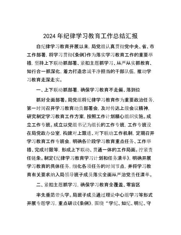 2024年纪律学习教育工作总结汇报 2024-09-25 Word模板 110 购买前,请一定要先点击这里看看,欢迎持续关注,精彩模板每天推送 预览结束,本文件为word文档,一共3页,共1288字,请购买后,下载后查看 购买前,请一定要先点击这里看看,欢迎持续关注,精彩模板每天推送 资源下载下载价格29 RMBVIP免费升级VIP点击检测网盘有效后购买有任何充值和下载问题请加微信:xuexixuexi66 0 总结汇报