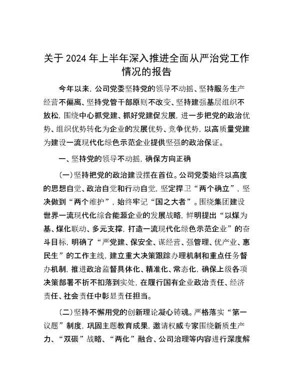 关于2024年上半年深入推进全面从严治党工作情况的报告 2024-09-25 Word模板 105 购买前,请一定要先点击这里看看,欢迎持续关注,精彩模板每天推送 预览结束,本文件为word文档,一共7页,共3033字,请购买后,下载后查看 购买前,请一定要先点击这里看看,欢迎持续关注,精彩模板每天推送 资源下载下载价格29 RMBVIP免费升级VIP点击检测网盘有效后购买有任何充值和下载问题请加微信:xuexixuexi66 0 总结汇报