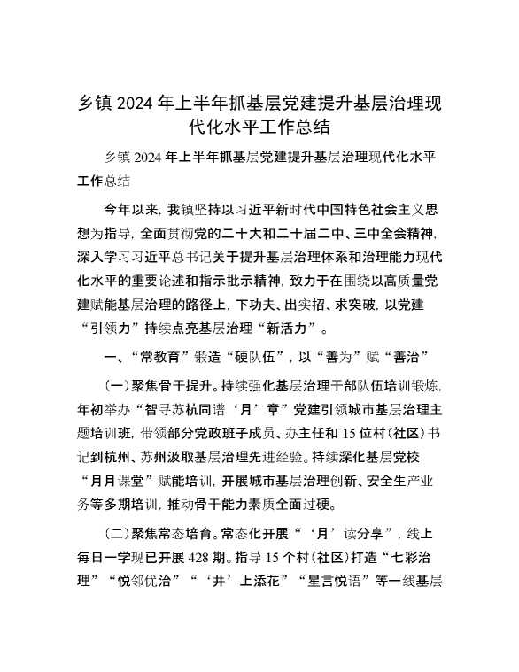 乡镇2024年上半年抓基层党建提升基层治理现代化水平工作总结 2024-09-25 Word模板 91 购买前,请一定要先点击这里看看,欢迎持续关注,精彩模板每天推送 预览结束,本文件为word文档,一共4页,共1508字,请购买后,下载后查看 购买前,请一定要先点击这里看看,欢迎持续关注,精彩模板每天推送 资源下载下载价格29 RMBVIP免费升级VIP点击检测网盘有效后购买有任何充值和下载问题请加微信:xuexixuexi66 0 总结汇报
