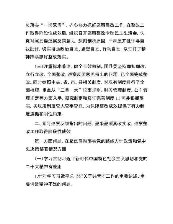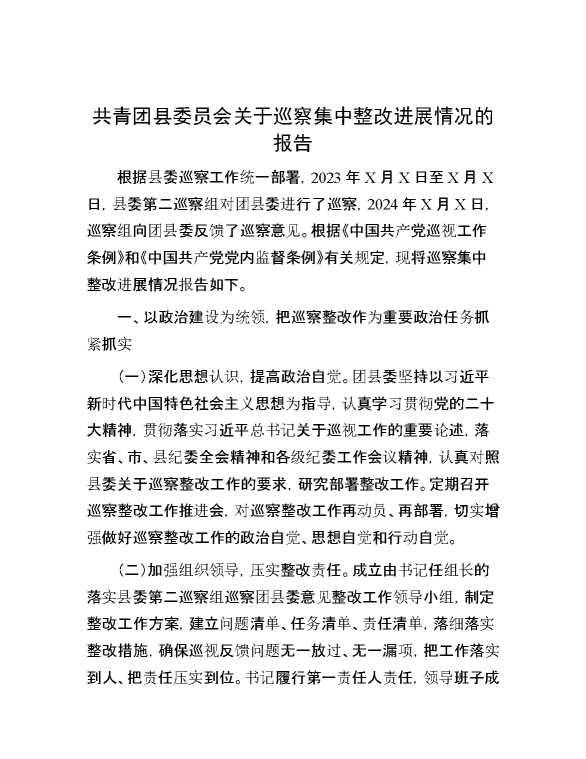 共青团县委员会关于巡察集中整改进展情况的报告 2024-09-26 Word模板 105 购买前,请一定要先点击这里看看,欢迎持续关注,精彩模板每天推送 预览结束,本文件为word文档,一共16页,共7518字,请购买后,下载后查看 购买前,请一定要先点击这里看看,欢迎持续关注,精彩模板每天推送 资源下载下载价格29 RMBVIP免费升级VIP立即购买有任何充值和下载问题请加微信:xuexixuexi66 0 总结汇报