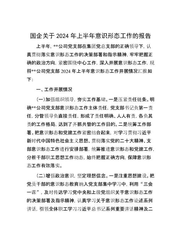 国企关于2024年上半年意识形态工作的报告 2024-09-26 Word模板 110 购买前,请一定要先点击这里看看,欢迎持续关注,精彩模板每天推送 预览结束,本文件为word文档,一共5页,共2438字,请购买后,下载后查看 购买前,请一定要先点击这里看看,欢迎持续关注,精彩模板每天推送 资源下载下载价格29 RMBVIP免费升级VIP立即购买有任何充值和下载问题请加微信:xuexixuexi66 0 总结汇报