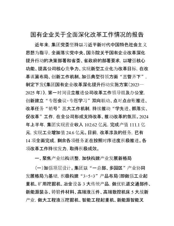国有企业关于全面深化改革工作情况的报告 2024-09-26 Word模板 133 购买前,请一定要先点击这里看看,欢迎持续关注,精彩模板每天推送 预览结束,本文件为word文档,一共6页,共2646字,请购买后,下载后查看 购买前,请一定要先点击这里看看,欢迎持续关注,精彩模板每天推送 资源下载下载价格29 RMBVIP免费升级VIP立即购买有任何充值和下载问题请加微信:xuexixuexi66 0 总结汇报