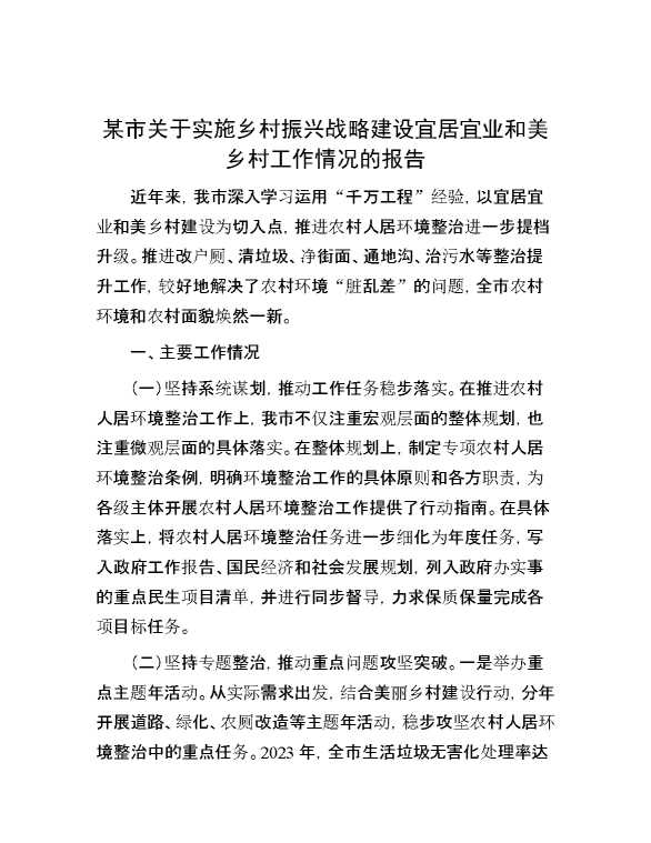 某市关于实施乡村振兴战略建设宜居宜业和美乡村工作情况的报告 2024-09-26 Word模板 98 购买前,请一定要先点击这里看看,欢迎持续关注,精彩模板每天推送 预览结束,本文件为word文档,一共7页,共3094字,请购买后,下载后查看 购买前,请一定要先点击这里看看,欢迎持续关注,精彩模板每天推送 资源下载下载价格29 RMBVIP免费升级VIP点击检测网盘有效后购买有任何充值和下载问题请加微信:xuexixuexi66 0 总结汇报
