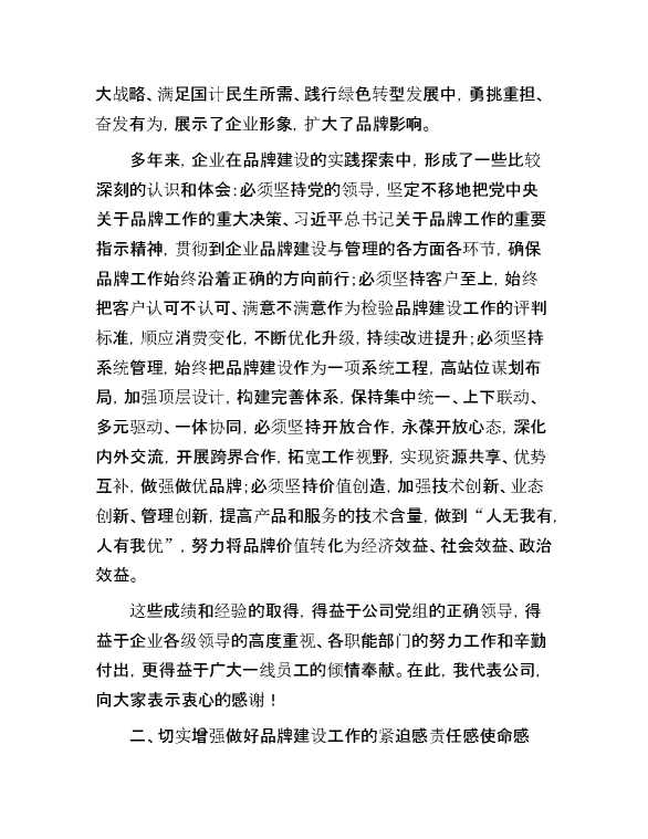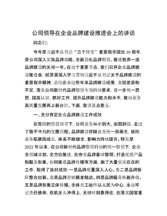 公司领导在企业品牌建设推进会上的讲话 2024-09-26 Word模板 99 购买前,请一定要先点击这里看看,欢迎持续关注,精彩模板每天推送 预览结束,本文件为word文档,一共8页,共3821字,请购买后,下载后查看 购买前,请一定要先点击这里看看,欢迎持续关注,精彩模板每天推送 资源下载下载价格29 RMBVIP免费升级VIP点击检测网盘有效后购买有任何充值和下载问题请加微信:xuexixuexi66 0 演讲发言