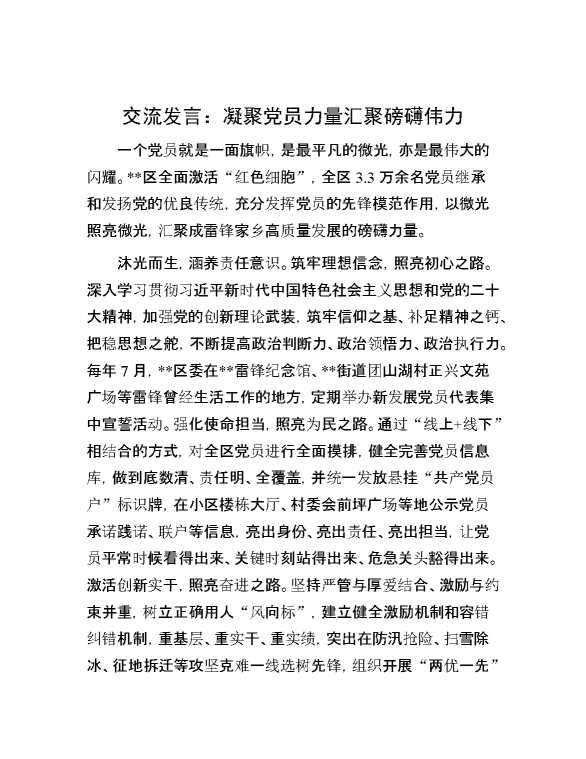 交流发言:凝聚党员力量 汇聚磅礴伟力 2024-09-26 Word模板 88 购买前,请一定要先点击这里看看,欢迎持续关注,精彩模板每天推送 预览结束,本文件为word文档,一共4页,共1500字,请购买后,下载后查看 购买前,请一定要先点击这里看看,欢迎持续关注,精彩模板每天推送 资源下载下载价格29 RMBVIP免费升级VIP点击检测网盘有效后购买有任何充值和下载问题请加微信:xuexixuexi66 0 演讲发言