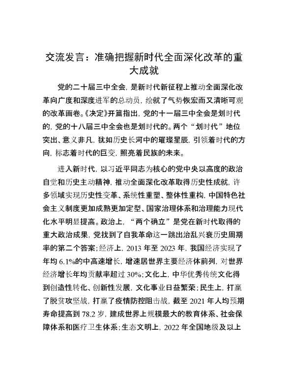 交流发言:准确把握新时代全面深化改革的重大成就 2024-09-26 Word模板 92 购买前,请一定要先点击这里看看,欢迎持续关注,精彩模板每天推送 预览结束,本文件为word文档,一共4页,共1631字,请购买后,下载后查看 购买前,请一定要先点击这里看看,欢迎持续关注,精彩模板每天推送 资源下载下载价格29 RMBVIP免费升级VIP点击检测网盘有效后购买有任何充值和下载问题请加微信:xuexixuexi66 0 演讲发言