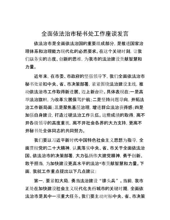 全面依法治市秘书处工作座谈发言 2024-09-26 Word模板 98 购买前,请一定要先点击这里看看,欢迎持续关注,精彩模板每天推送 预览结束,本文件为word文档,一共3页,共1231字,请购买后,下载后查看 购买前,请一定要先点击这里看看,欢迎持续关注,精彩模板每天推送 资源下载下载价格29 RMBVIP免费升级VIP点击检测网盘有效后购买有任何充值和下载问题请加微信:xuexixuexi66 0 演讲发言