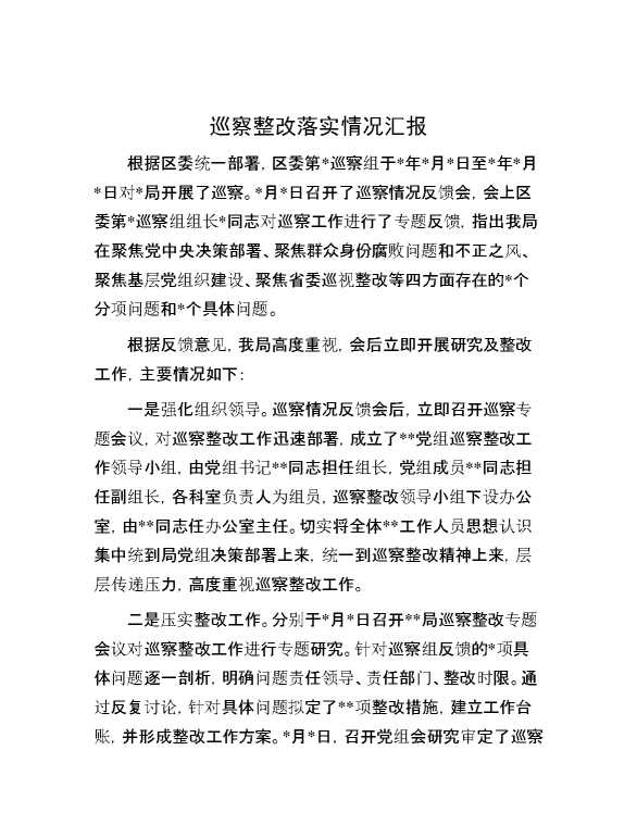 巡察整改落实情况汇报 2024-09-27 Word模板 68 购买前,请一定要先点击这里看看,欢迎持续关注,精彩模板每天推送 预览结束,本文件为word文档,一共3页,共1265字,请购买后,下载后查看 购买前,请一定要先点击这里看看,欢迎持续关注,精彩模板每天推送 资源下载下载价格29 RMBVIP免费升级VIP点击检测网盘有效后购买有任何充值和下载问题请加微信:xuexixuexi66 0 总结汇报