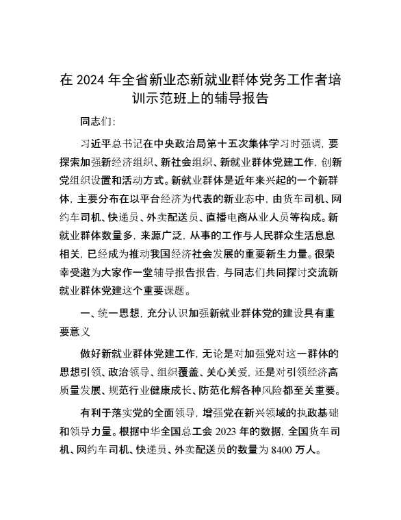 在2024年全省新业态新就业群体党务工作者培训示范班上的辅导报告 2024-09-27 Word模板 70 购买前,请一定要先点击这里看看,欢迎持续关注,精彩模板每天推送 预览结束,本文件为word文档,一共12页,共5604字,请购买后,下载后查看 购买前,请一定要先点击这里看看,欢迎持续关注,精彩模板每天推送 资源下载下载价格29 RMBVIP免费升级VIP点击检测网盘有效后购买有任何充值和下载问题请加微信:xuexixuexi66 0 总结汇报