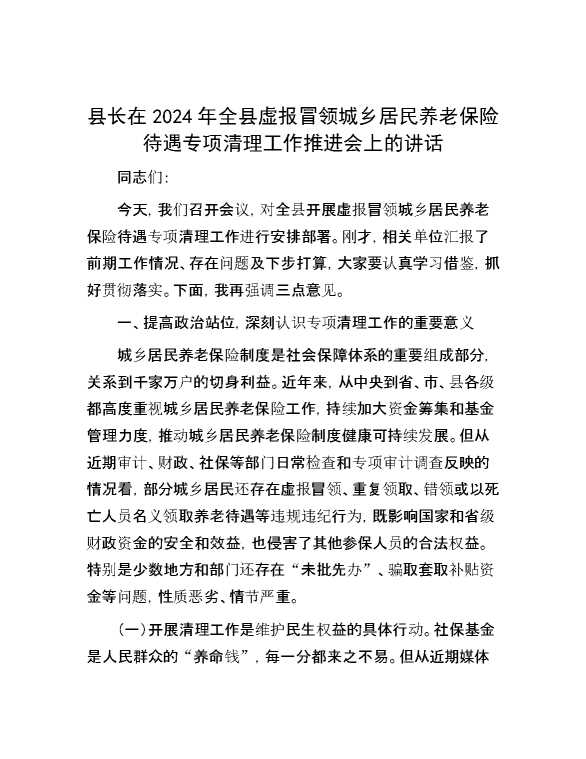 县长在2024年全县虚报冒领城乡居民养老保险待遇专项清理工作推进会上的讲话 2024-09-27 Word模板 78 购买前,请一定要先点击这里看看,欢迎持续关注,精彩模板每天推送 预览结束,本文件为word文档,一共6页,共2747字,请购买后,下载后查看 购买前,请一定要先点击这里看看,欢迎持续关注,精彩模板每天推送 资源下载下载价格29 RMBVIP免费升级VIP点击检测网盘有效后购买有任何充值和下载问题请加微信:xuexixuexi66 0 演讲发言