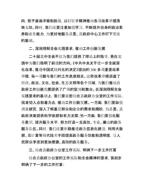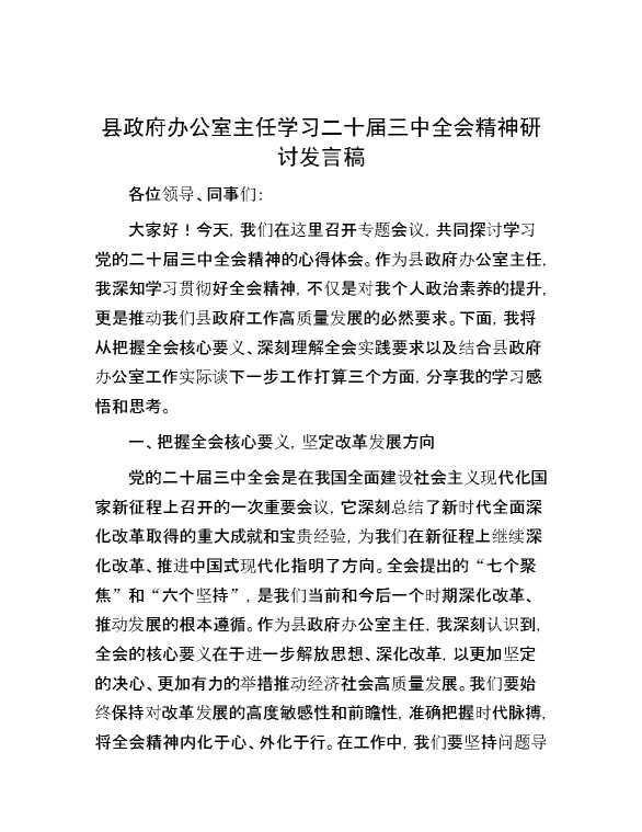 县政府办公室主任学习二十届三中全会精神研讨发言稿 2024-09-27 Word模板 75 购买前,请一定要先点击这里看看,欢迎持续关注,精彩模板每天推送 预览结束,本文件为word文档,一共4页,共1695字,请购买后,下载后查看 购买前,请一定要先点击这里看看,欢迎持续关注,精彩模板每天推送 资源下载下载价格29 RMBVIP免费升级VIP点击检测网盘有效后购买有任何充值和下载问题请加微信:xuexixuexi66 0 演讲发言