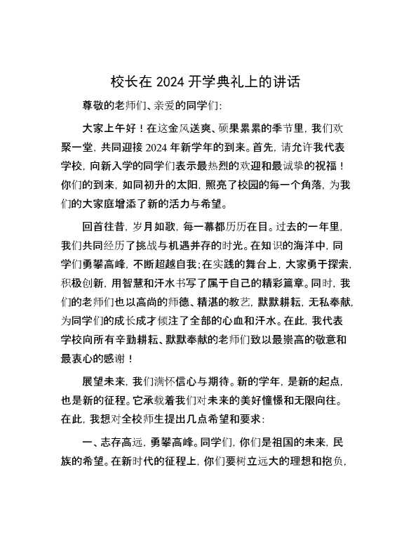 校长在2024开学典礼上的讲话 2024-09-27 Word模板 73 购买前,请一定要先点击这里看看,欢迎持续关注,精彩模板每天推送 预览结束,本文件为word文档,一共3页,共1037字,请购买后,下载后查看 购买前,请一定要先点击这里看看,欢迎持续关注,精彩模板每天推送 资源下载下载价格29 RMBVIP免费升级VIP点击检测网盘有效后购买有任何充值和下载问题请加微信:xuexixuexi66 0 演讲发言