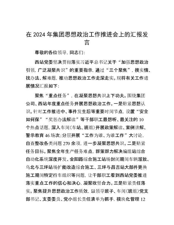 在2024年集团思想政治工作推进会上的汇报发言 2024-09-27 Word模板 110 购买前,请一定要先点击这里看看,欢迎持续关注,精彩模板每天推送 预览结束,本文件为word文档,一共3页,共1266字,请购买后,下载后查看 购买前,请一定要先点击这里看看,欢迎持续关注,精彩模板每天推送 资源下载下载价格29 RMBVIP免费升级VIP点击检测网盘有效后购买有任何充值和下载问题请加微信:xuexixuexi66 0 演讲发言