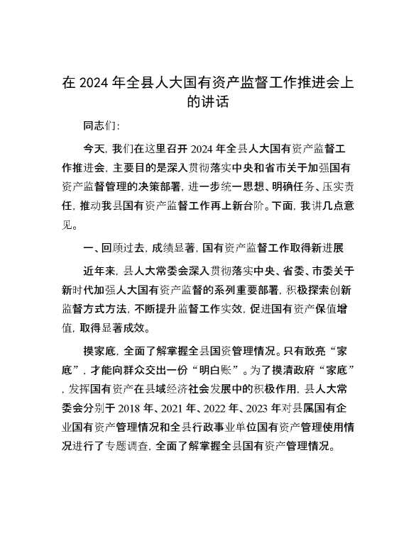 在2024年全县人大国有资产监督工作推进会上的讲话 2024-09-27 Word模板 101 购买前,请一定要先点击这里看看,欢迎持续关注,精彩模板每天推送 预览结束,本文件为word文档,一共5页,共2275字,请购买后,下载后查看 购买前,请一定要先点击这里看看,欢迎持续关注,精彩模板每天推送 资源下载下载价格29 RMBVIP免费升级VIP点击检测网盘有效后购买有任何充值和下载问题请加微信:xuexixuexi66 0 演讲发言