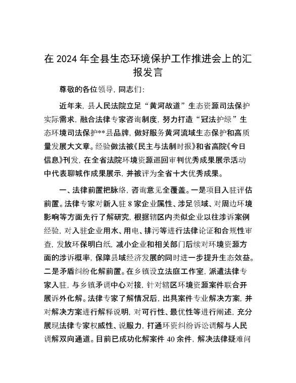 在2024年全县生态环境保护工作推进会上的汇报发言 2024-09-27 Word模板 96 购买前,请一定要先点击这里看看,欢迎持续关注,精彩模板每天推送 预览结束,本文件为word文档,一共4页,共1778字,请购买后,下载后查看 购买前,请一定要先点击这里看看,欢迎持续关注,精彩模板每天推送 资源下载下载价格29 RMBVIP免费升级VIP点击检测网盘有效后购买有任何充值和下载问题请加微信:xuexixuexi66 0 演讲发言