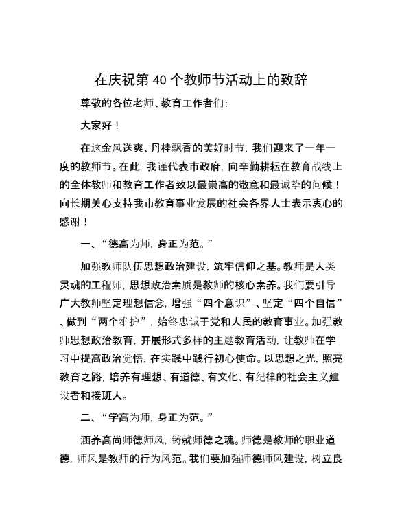 在庆祝第40个教师节活动上的致辞 2024-09-27 Word模板 102 购买前,请一定要先点击这里看看,欢迎持续关注,精彩模板每天推送 预览结束,本文件为word文档,一共3页,共1122字,请购买后,下载后查看 购买前,请一定要先点击这里看看,欢迎持续关注,精彩模板每天推送 资源下载下载价格29 RMBVIP免费升级VIP点击检测网盘有效后购买有任何充值和下载问题请加微信:xuexixuexi66 0 演讲发言