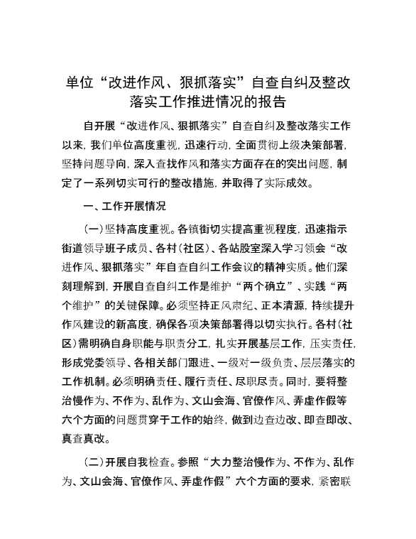 单位“改进作风、狠抓落实”自查自纠及整改落实工作推进情况的报告 2024-09-28 Word模板 71 购买前,请一定要先点击这里看看,欢迎持续关注,精彩模板每天推送 预览结束,本文件为word文档,一共6页,共2440字,请购买后,下载后查看 购买前,请一定要先点击这里看看,欢迎持续关注,精彩模板每天推送 资源下载下载价格29 RMBVIP免费升级VIP点击检测网盘有效后购买有任何充值和下载问题请加微信:xuexixuexi66 0 总结汇报