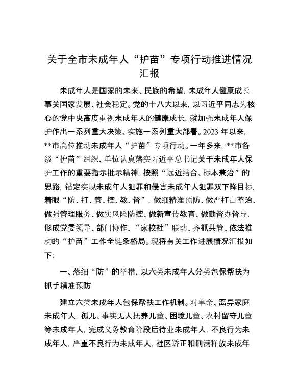 关于全市未成年人“护苗”专项行动推进情况汇报 2024-09-28 Word模板 68 购买前,请一定要先点击这里看看,欢迎持续关注,精彩模板每天推送 预览结束,本文件为word文档,一共8页,共3857字,请购买后,下载后查看 购买前,请一定要先点击这里看看,欢迎持续关注,精彩模板每天推送 资源下载下载价格29 RMBVIP免费升级VIP点击检测网盘有效后购买有任何充值和下载问题请加微信:xuexixuexi66 0 总结汇报