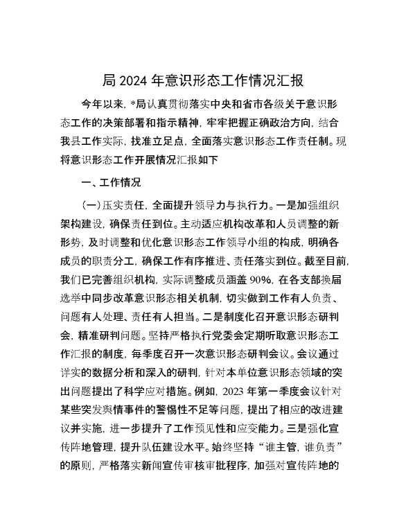 局2024年意识形态工作情况汇报 2024-09-28 Word模板 75 购买前,请一定要先点击这里看看,欢迎持续关注,精彩模板每天推送 预览结束,本文件为word文档,一共7页,共3140字,请购买后,下载后查看 购买前,请一定要先点击这里看看,欢迎持续关注,精彩模板每天推送 资源下载下载价格29 RMBVIP免费升级VIP点击检测网盘有效后购买有任何充值和下载问题请加微信:xuexixuexi66 0 总结汇报
