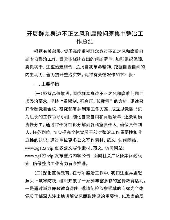 开展群众身边不正之风和腐败问题集中整治工作总结 2024-09-28 Word模板 80 购买前,请一定要先点击这里看看,欢迎持续关注,精彩模板每天推送 预览结束,本文件为word文档,一共6页,共2491字,请购买后,下载后查看 购买前,请一定要先点击这里看看,欢迎持续关注,精彩模板每天推送 资源下载下载价格29 RMBVIP免费升级VIP点击检测网盘有效后购买有任何充值和下载问题请加微信:xuexixuexi66 0 总结汇报