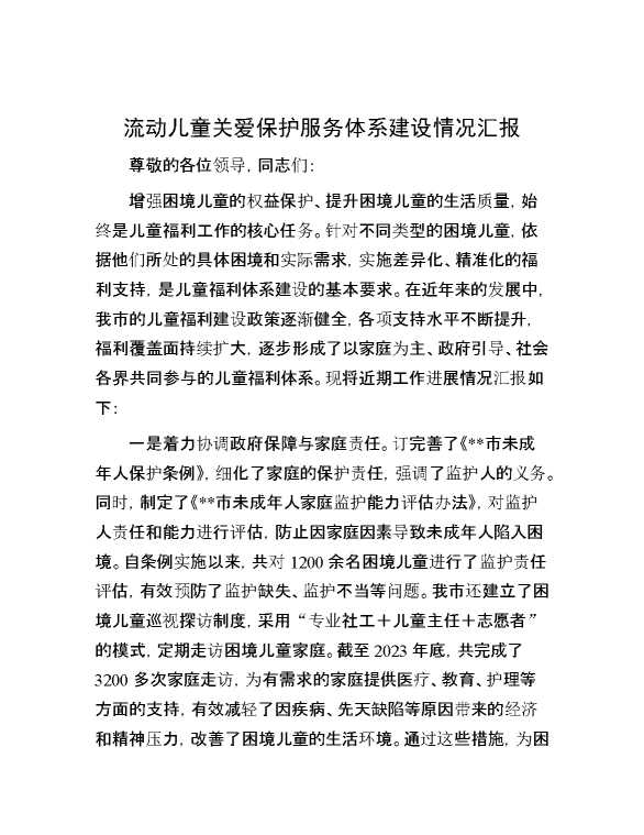 流动儿童关爱保护服务体系建设情况汇报 2024-09-28 Word模板 78 购买前,请一定要先点击这里看看,欢迎持续关注,精彩模板每天推送 预览结束,本文件为word文档,一共4页,共1963字,请购买后,下载后查看 购买前,请一定要先点击这里看看,欢迎持续关注,精彩模板每天推送 资源下载下载价格29 RMBVIP免费升级VIP点击检测网盘有效后购买有任何充值和下载问题请加微信:xuexixuexi66 0 总结汇报