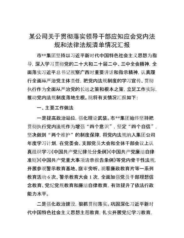 某公司关于贯彻落实领导干部应知应会党内法规和法律法规清单情况汇报 2024-09-28 Word模板 73 购买前,请一定要先点击这里看看,欢迎持续关注,精彩模板每天推送 预览结束,本文件为word文档,一共4页,共1801字,请购买后,下载后查看 购买前,请一定要先点击这里看看,欢迎持续关注,精彩模板每天推送 资源下载下载价格29 RMBVIP免费升级VIP点击检测网盘有效后购买有任何充值和下载问题请加微信:xuexixuexi66 0 总结汇报