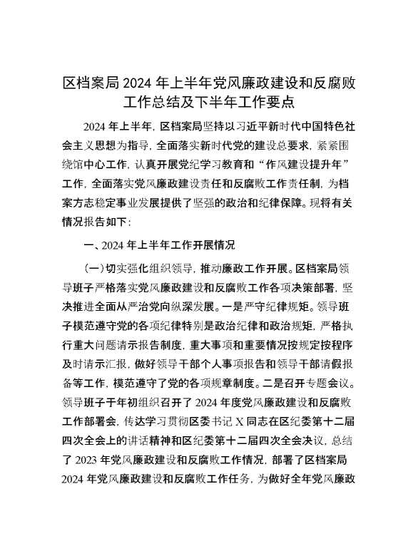 区档案局2024年上半年党风廉政建设和反腐败工作总结及下半年工作要点 2024-09-28 Word模板 95 购买前,请一定要先点击这里看看,欢迎持续关注,精彩模板每天推送 预览结束,本文件为word文档,一共5页,共2485字,请购买后,下载后查看 购买前,请一定要先点击这里看看,欢迎持续关注,精彩模板每天推送 资源下载下载价格29 RMBVIP免费升级VIP点击检测网盘有效后购买有任何充值和下载问题请加微信:xuexixuexi66 0 总结汇报