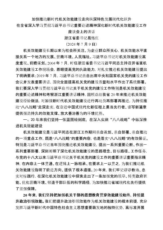 浙江省委书记易炼红:在全省深入学习贯彻习近平总书记重要论述精神深化新时代机关效能建设工作座谈会上的讲话 2024-09-29 Word模板 79 购买前,请一定要先点击这里看看,欢迎持续关注,精彩模板每天推送 预览结束,本文件为word文档,一共5页,共4457字,请购买后,下载后查看 购买前,请一定要先点击这里看看,欢迎持续关注,精彩模板每天推送 资源下载下载价格29 RMBVIP免费升级VIP点击检测网盘有效后购买有任何充值和下载问题请加微信:xuexixuexi66 0 演讲发言