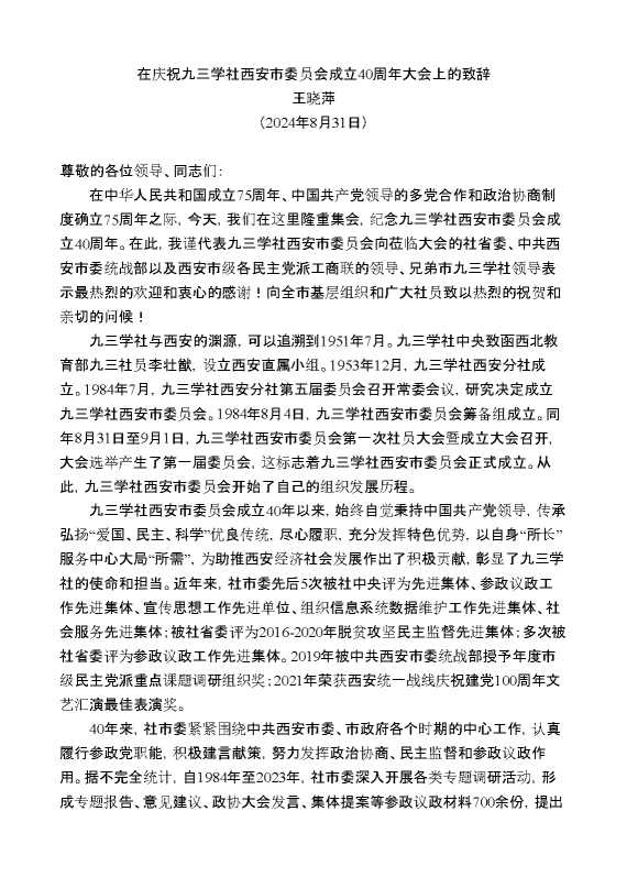 王晓萍:在庆祝九三学社西安市委员会成立40周年大会上的致辞 2024-09-29 Word模板 80 购买前,请一定要先点击这里看看,欢迎持续关注,精彩模板每天推送 预览结束,本文件为word文档,一共3页,共2632字,请购买后,下载后查看 购买前,请一定要先点击这里看看,欢迎持续关注,精彩模板每天推送 资源下载下载价格29 RMBVIP免费升级VIP点击检测网盘有效后购买有任何充值和下载问题请加微信:xuexixuexi66 0 演讲发言