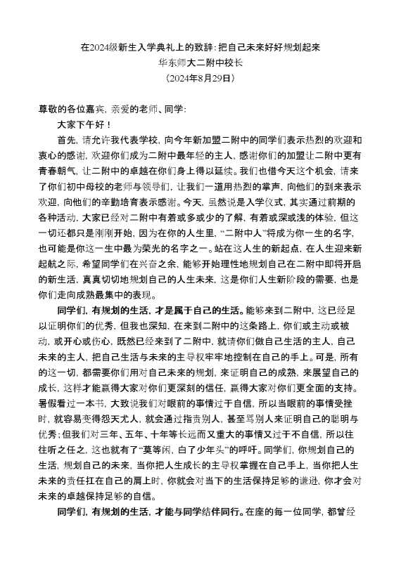 华东师大二附中校长:在2024级新生入学典礼上的致辞 2024-09-29 Word模板 76 购买前,请一定要先点击这里看看,欢迎持续关注,精彩模板每天推送 预览结束,本文件为word文档,一共3页,共2078字,请购买后,下载后查看 购买前,请一定要先点击这里看看,欢迎持续关注,精彩模板每天推送 资源下载下载价格29 RMBVIP免费升级VIP点击检测网盘有效后购买有任何充值和下载问题请加微信:xuexixuexi66 0 演讲发言