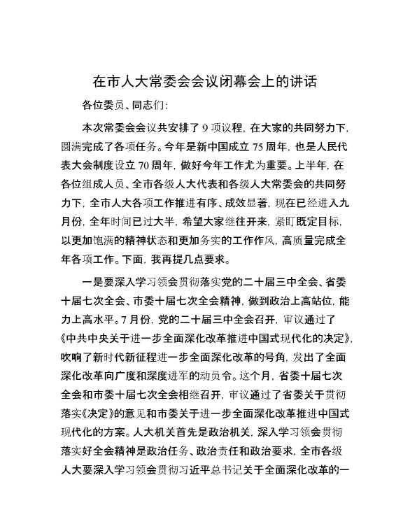 在市人大常委会会议闭幕会上的讲话 2024-09-29 Word模板 71 购买前,请一定要先点击这里看看,欢迎持续关注,精彩模板每天推送 预览结束,本文件为word文档,一共3页,共1279字,请购买后,下载后查看 购买前,请一定要先点击这里看看,欢迎持续关注,精彩模板每天推送 资源下载下载价格29 RMBVIP免费升级VIP点击检测网盘有效后购买有任何充值和下载问题请加微信:xuexixuexi66 0 演讲发言