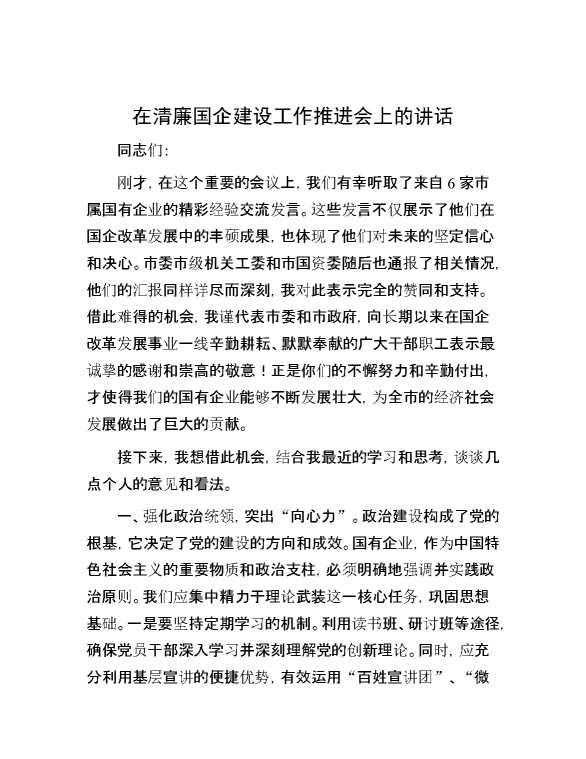 在清廉国企建设工作推进会上的讲话 2024-09-29 Word模板 71 购买前,请一定要先点击这里看看,欢迎持续关注,精彩模板每天推送 预览结束,本文件为word文档,一共5页,共2305字,请购买后,下载后查看 购买前,请一定要先点击这里看看,欢迎持续关注,精彩模板每天推送 资源下载下载价格29 RMBVIP免费升级VIP点击检测网盘有效后购买有任何充值和下载问题请加微信:xuexixuexi66 0 演讲发言