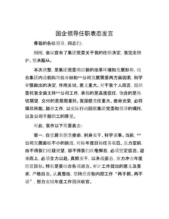 国企领导任职表态发言 2024-09-29 Word模板 91 购买前,请一定要先点击这里看看,欢迎持续关注,精彩模板每天推送 预览结束,本文件为word文档,一共2页,共739字,请购买后,下载后查看 购买前,请一定要先点击这里看看,欢迎持续关注,精彩模板每天推送 资源下载下载价格29 RMBVIP免费升级VIP点击检测网盘有效后购买有任何充值和下载问题请加微信:xuexixuexi66 0 演讲发言