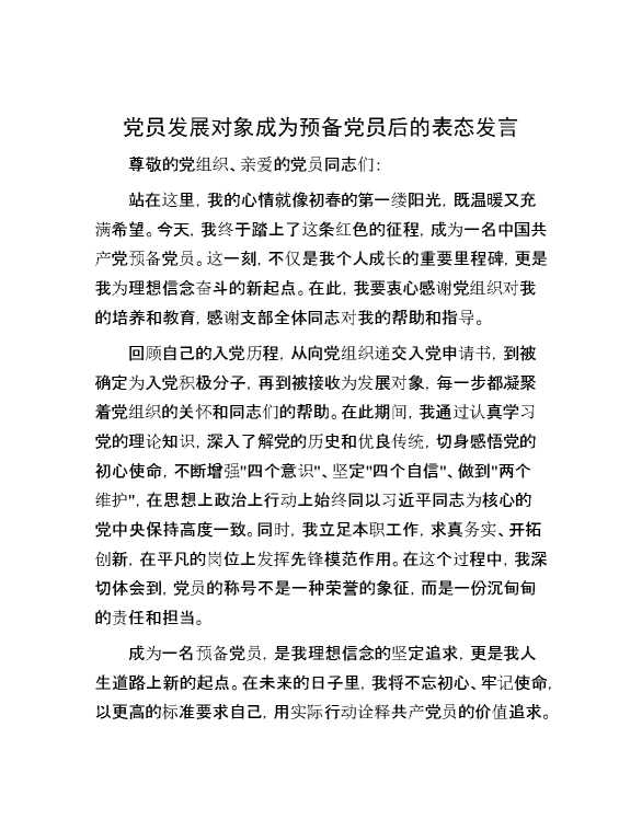 党员发展对象成为预备党员后的表态发言 2024-09-29 Word模板 107 购买前,请一定要先点击这里看看,欢迎持续关注,精彩模板每天推送 预览结束,本文件为word文档,一共3页,共1284字,请购买后,下载后查看 购买前,请一定要先点击这里看看,欢迎持续关注,精彩模板每天推送 资源下载下载价格29 RMBVIP免费升级VIP点击检测网盘有效后购买有任何充值和下载问题请加微信:xuexixuexi66 0 演讲发言