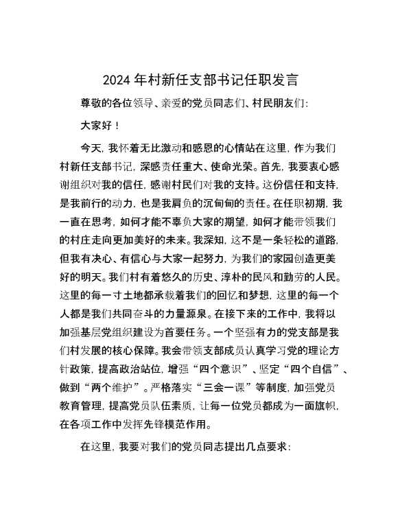2024年村新任支部书记任职发言 2024-09-29 Word模板 97 购买前,请一定要先点击这里看看,欢迎持续关注,精彩模板每天推送 预览结束,本文件为word文档,一共3页,共1231字,请购买后,下载后查看 购买前,请一定要先点击这里看看,欢迎持续关注,精彩模板每天推送 资源下载下载价格29 RMBVIP免费升级VIP点击检测网盘有效后购买有任何充值和下载问题请加微信:xuexixuexi66 0 演讲发言