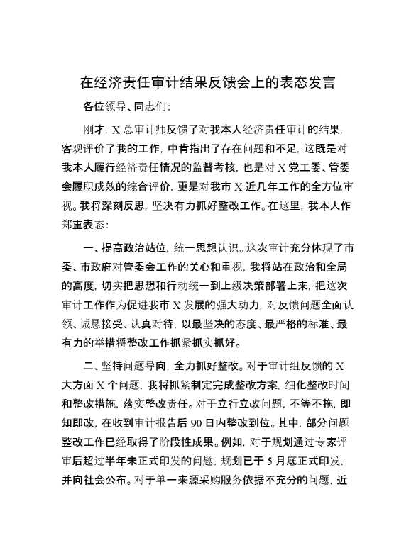 在经济责任审计结果反馈会上的表态发言 2024-09-29 Word模板 105 购买前,请一定要先点击这里看看,欢迎持续关注,精彩模板每天推送 预览结束,本文件为word文档,一共2页,共900字,请购买后,下载后查看 购买前,请一定要先点击这里看看,欢迎持续关注,精彩模板每天推送 资源下载下载价格29 RMBVIP免费升级VIP点击检测网盘有效后购买有任何充值和下载问题请加微信:xuexixuexi66 0 演讲发言