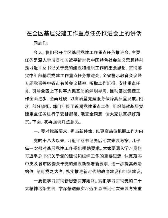 在全区基层党建工作重点任务推进会上的讲话 2024-09-29 Word模板 95 购买前,请一定要先点击这里看看,欢迎持续关注,精彩模板每天推送 预览结束,本文件为word文档,一共5页,共2398字,请购买后,下载后查看 购买前,请一定要先点击这里看看,欢迎持续关注,精彩模板每天推送 资源下载下载价格29 RMBVIP免费升级VIP点击检测网盘有效后购买有任何充值和下载问题请加微信:xuexixuexi66 0 演讲发言