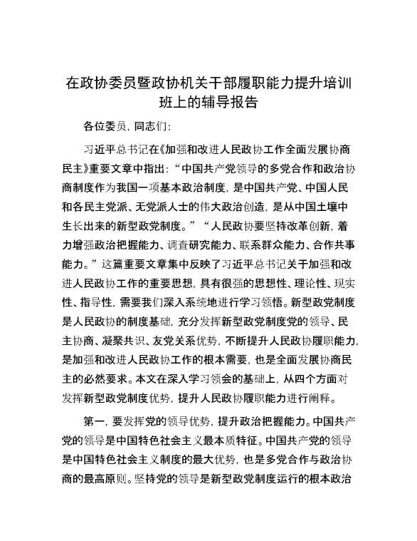 在政协委员暨政协机关干部履职能力提升培训班上的辅导报告 2024-09-29 Word模板 95 购买前,请一定要先点击这里看看,欢迎持续关注,精彩模板每天推送 预览结束,本文件为word文档,一共6页,共2898字,请购买后,下载后查看 购买前,请一定要先点击这里看看,欢迎持续关注,精彩模板每天推送 资源下载下载价格29 RMBVIP免费升级VIP点击检测网盘有效后购买有任何充值和下载问题请加微信:xuexixuexi66 0 总结汇报