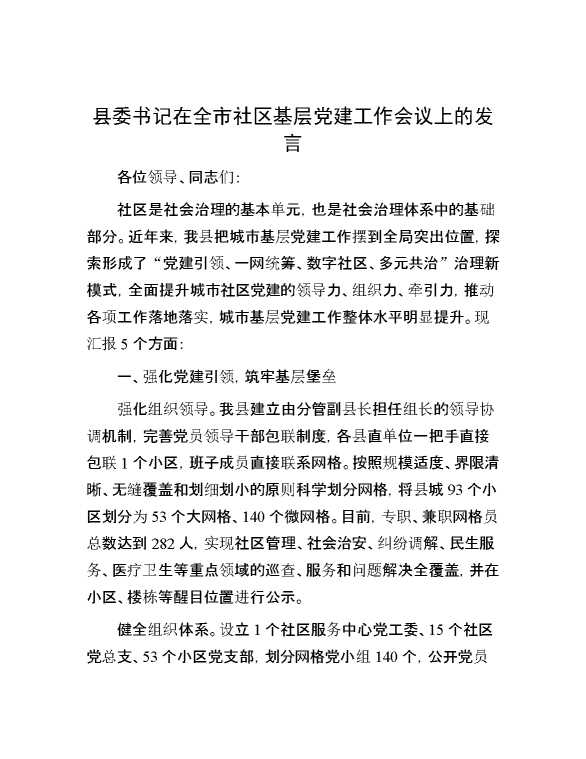 县委书记在全市社区基层党建工作会议上的发言 2024-09-29 Word模板 98 购买前,请一定要先点击这里看看,欢迎持续关注,精彩模板每天推送 预览结束,本文件为word文档,一共5页,共2132字,请购买后,下载后查看 购买前,请一定要先点击这里看看,欢迎持续关注,精彩模板每天推送 资源下载下载价格29 RMBVIP免费升级VIP点击检测网盘有效后购买有任何充值和下载问题请加微信:xuexixuexi66 0 演讲发言