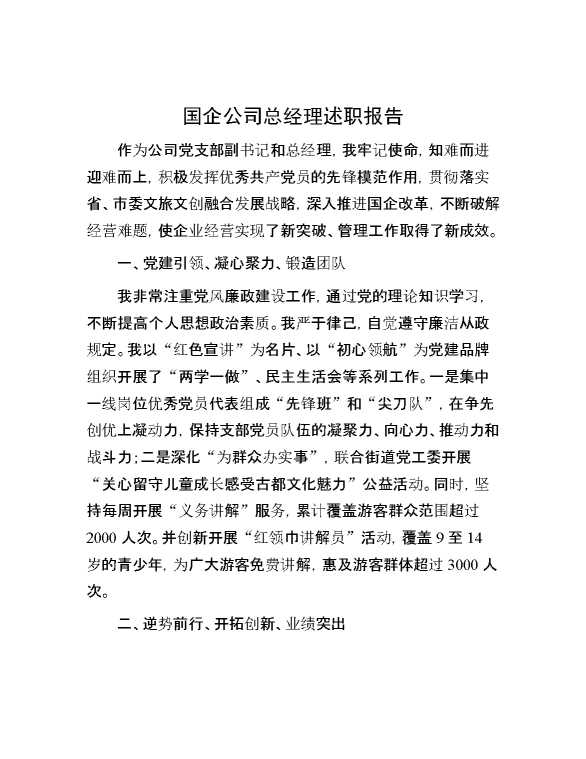 国企公司总经理述职报告 2024-09-29 Word模板 97 购买前,请一定要先点击这里看看,欢迎持续关注,精彩模板每天推送 预览结束,本文件为word文档,一共6页,共2593字,请购买后,下载后查看 购买前,请一定要先点击这里看看,欢迎持续关注,精彩模板每天推送 资源下载下载价格29 RMBVIP免费升级VIP点击检测网盘有效后购买有任何充值和下载问题请加微信:xuexixuexi66 0 总结汇报