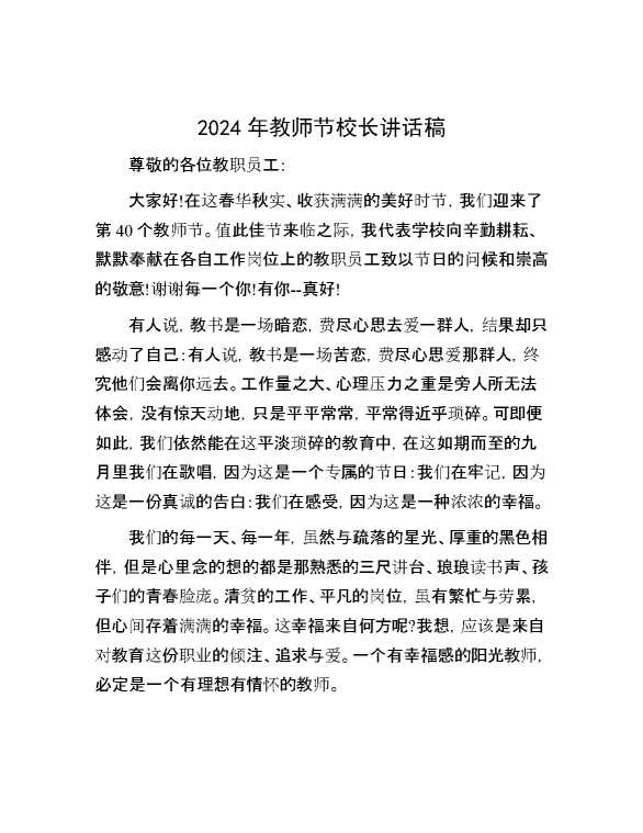 2024年教师节校长讲话稿 2024-09-29 Word模板 92 购买前,请一定要先点击这里看看,欢迎持续关注,精彩模板每天推送 预览结束,本文件为word文档,一共3页,共1261字,请购买后,下载后查看 购买前,请一定要先点击这里看看,欢迎持续关注,精彩模板每天推送 资源下载下载价格29 RMBVIP免费升级VIP点击检测网盘有效后购买有任何充值和下载问题请加微信:xuexixuexi66 0 演讲发言