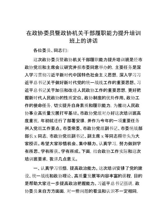 在政协委员暨政协机关干部履职能力提升培训班上的讲话 2024-09-29 Word模板 86 购买前,请一定要先点击这里看看,欢迎持续关注,精彩模板每天推送 预览结束,本文件为word文档,一共6页,共3031字,请购买后,下载后查看 购买前,请一定要先点击这里看看,欢迎持续关注,精彩模板每天推送 资源下载下载价格29 RMBVIP免费升级VIP点击检测网盘有效后购买有任何充值和下载问题请加微信:xuexixuexi66 0 演讲发言