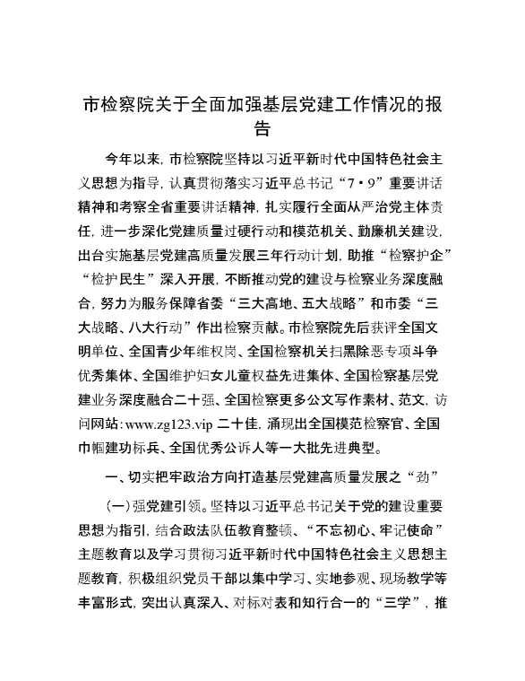 市检察院关于全面加强基层党建工作情况的报告 2024-09-29 Word模板 101 购买前,请一定要先点击这里看看,欢迎持续关注,精彩模板每天推送 预览结束,本文件为word文档,一共6页,共2944字,请购买后,下载后查看 购买前,请一定要先点击这里看看,欢迎持续关注,精彩模板每天推送 资源下载下载价格29 RMBVIP免费升级VIP点击检测网盘有效后购买有任何充值和下载问题请加微信:xuexixuexi66 0 总结汇报