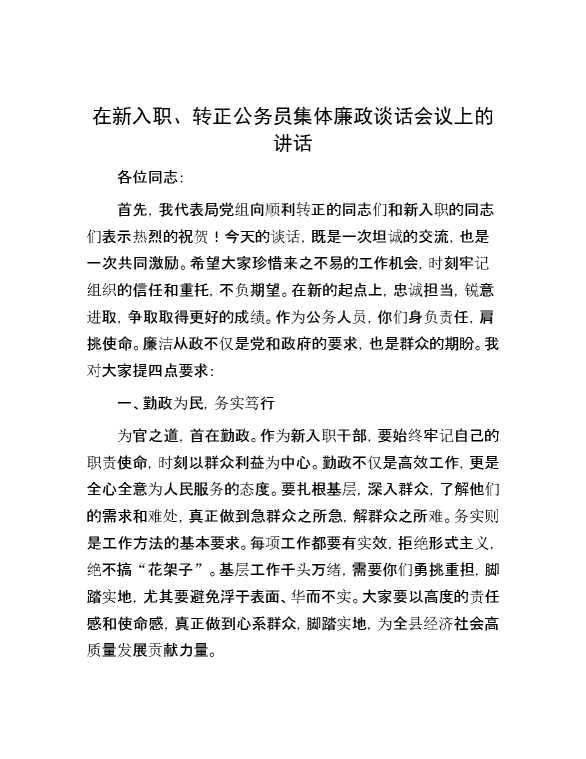 在新入职、转正公务员集体廉政谈话会议上的讲话 2024-09-29 Word模板 89 购买前,请一定要先点击这里看看,欢迎持续关注,精彩模板每天推送 预览结束,本文件为word文档,一共3页,共1131字,请购买后,下载后查看 购买前,请一定要先点击这里看看,欢迎持续关注,精彩模板每天推送 资源下载下载价格29 RMBVIP免费升级VIP点击检测网盘有效后购买有任何充值和下载问题请加微信:xuexixuexi66 0 演讲发言