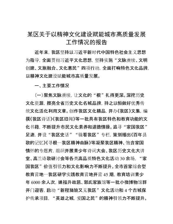 某区关于以精神文化建设赋能城市高质量发展工作情况的报告 2024-09-29 Word模板 87 购买前,请一定要先点击这里看看,欢迎持续关注,精彩模板每天推送 预览结束,本文件为word文档,一共4页,共1897字,请购买后,下载后查看 购买前,请一定要先点击这里看看,欢迎持续关注,精彩模板每天推送 资源下载下载价格29 RMBVIP免费升级VIP点击检测网盘有效后购买有任何充值和下载问题请加微信:xuexixuexi66 0 总结汇报