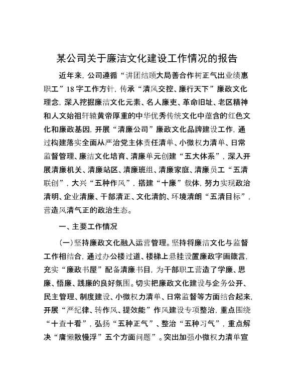 某公司关于廉洁文化建设工作情况的报告 2024-09-29 Word模板 97 购买前,请一定要先点击这里看看,欢迎持续关注,精彩模板每天推送 预览结束,本文件为word文档,一共5页,共2451字,请购买后,下载后查看 购买前,请一定要先点击这里看看,欢迎持续关注,精彩模板每天推送 资源下载下载价格29 RMBVIP免费升级VIP点击检测网盘有效后购买有任何充值和下载问题请加微信:xuexixuexi66 0 总结汇报