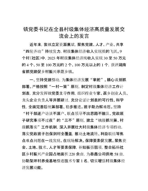 镇党委书记在全县村级集体经济高质量发展交流会上的发言 2024-10-08 Word模板 90 购买前,请一定要先点击这里看看,欢迎持续关注,精彩模板每天推送 预览结束,本文件为word文档,一共3页,共1389字,请购买后,下载后查看 购买前,请一定要先点击这里看看,欢迎持续关注,精彩模板每天推送 资源下载下载价格29 RMBVIP免费升级VIP点击检测网盘有效后购买有任何充值和下载问题请加微信:xuexixuexi66 0 演讲发言
