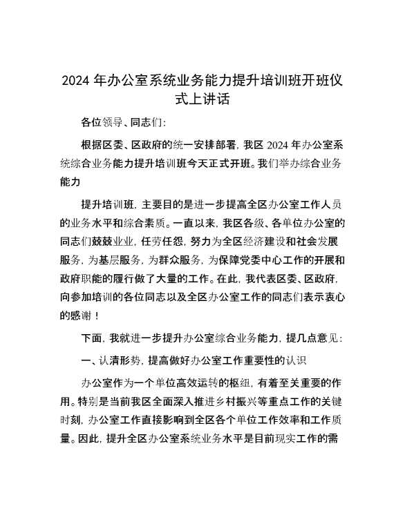 2024年办公室系统业务能力提升培训班开班仪式上讲话 2024-10-08 Word模板 90 购买前,请一定要先点击这里看看,欢迎持续关注,精彩模板每天推送 预览结束,本文件为word文档,一共6页,共2487字,请购买后,下载后查看 购买前,请一定要先点击这里看看,欢迎持续关注,精彩模板每天推送 资源下载下载价格29 RMBVIP免费升级VIP点击检测网盘有效后购买有任何充值和下载问题请加微信:xuexixuexi66 0 演讲发言
